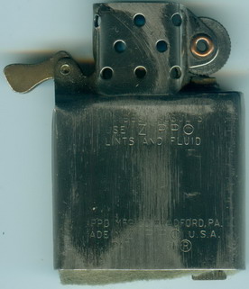 Around the middle of 1958 the patent number on the insert was moved to the centre, then towards the end of the year, additional wording (For best results use Zippo Flints and Fluid) was added.