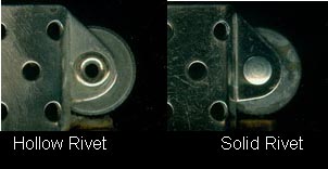 The hollow Rivet was used up to 1963, but the solid rivet was introduced in 1961. Between these dates either rivet could have been fitted. |