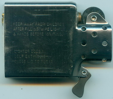 There were two changes made to the insert in 1982. The first was the two blocks of text on the reverse were transposed, so that "Keep away from Children" was now at the top. Around the same time Zippo also started date coding the inserts, using the same codes as the base of the lighter. This appears to be random, until 1984, when the codes on the inserts were fully in use. Some 1982/3 inserts are date coded, whilst others are not.