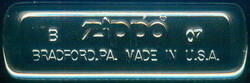 2007 | 07 | There are two minor adjustments to the bottom stamp this year. The date code is much thicker than in previous years and the ® after Zippo has been moved up and left |